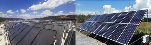 【太阳能热水系统(左);太阳能光伏系统(右)】