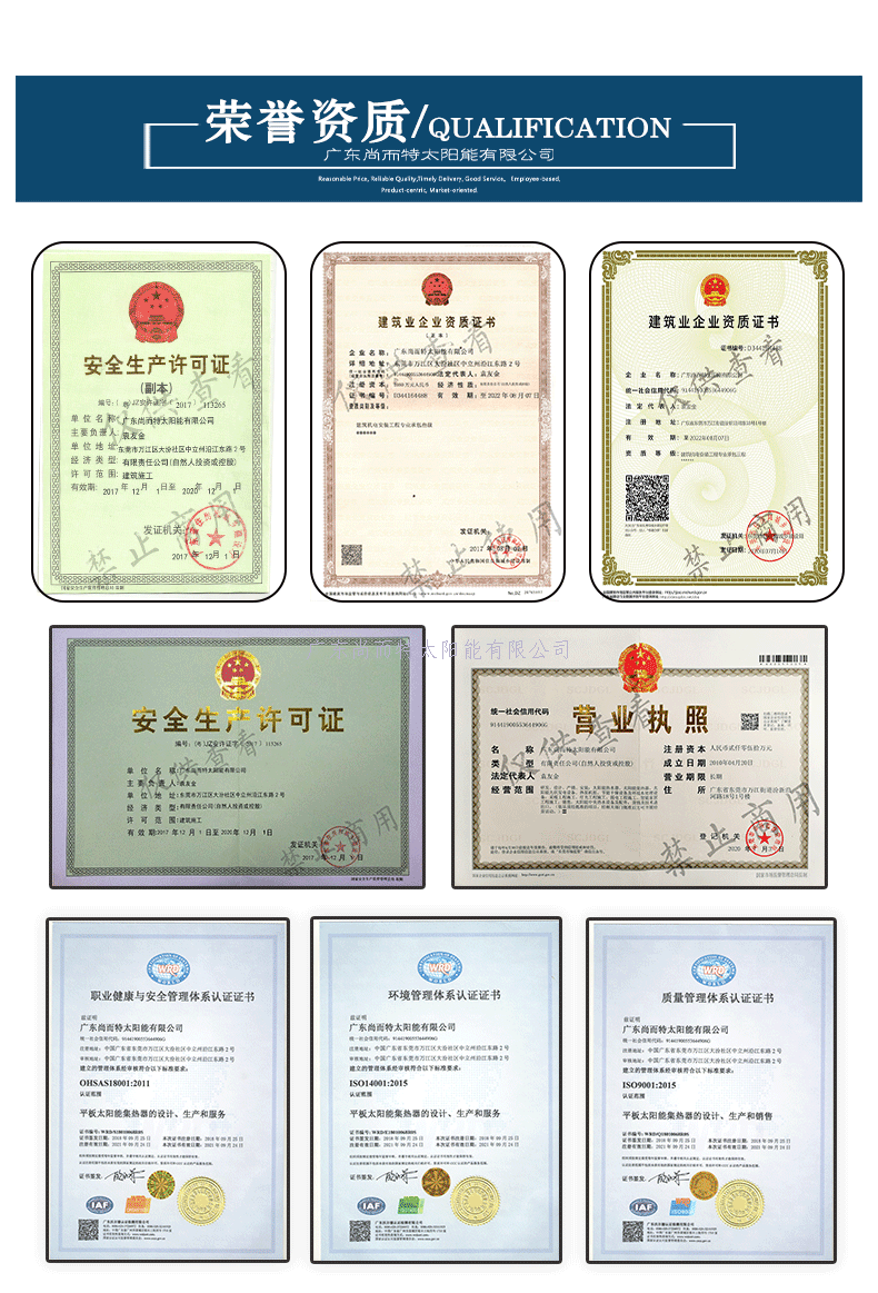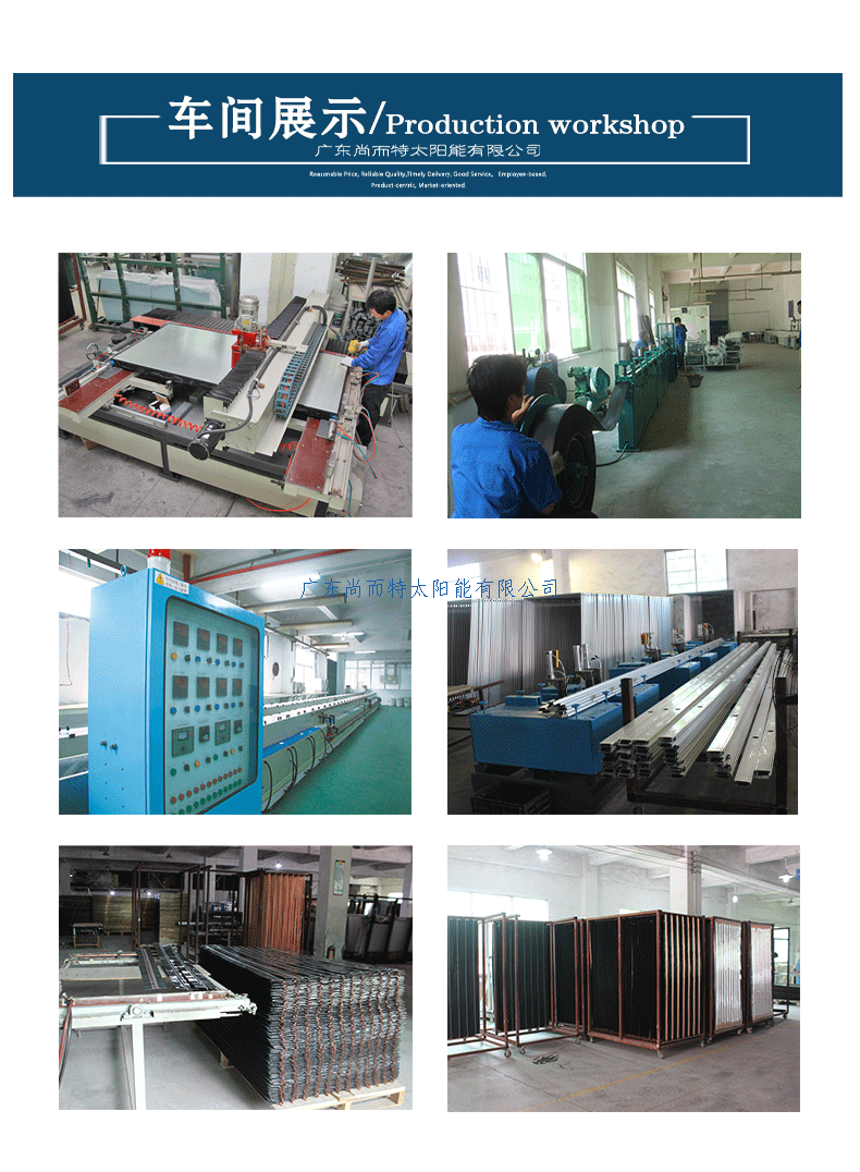 7、平板太阳能集热器专用镀锌背板,有优秀的密着性和焊接性。耐腐蚀,不生锈,使用寿命长;